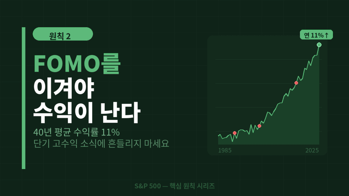 흔히 포모(FOMO)라고 불리우는 현상을 조심해야 합니다. 상대적인 비교로 인해 느끼는 고통, 두려움 등의 부정적 감정이 장기적인 레이스에 방해가 될 수 있습니다.