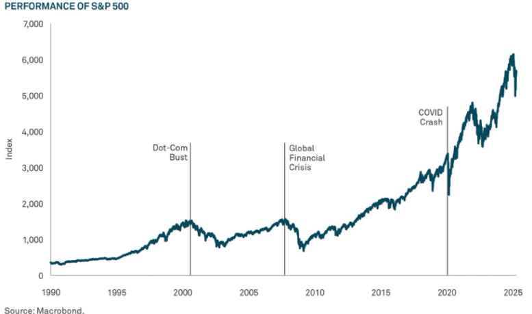 아래 그래프를 보시면 닷컴 버블, 글로벌 금융위기, 코로나 때와 같은 큰 이슈가 있을 때 S&P 500 지수가 급격하게 하락한 것을 볼 수 있습니다. 막상 보유하는 단계에서 급락이 있다면 마음이 힘들었을 것 같습니다.