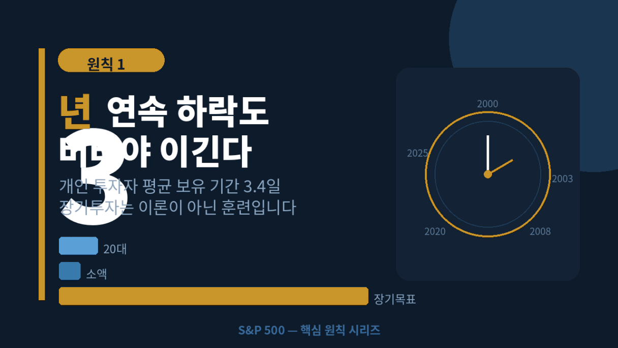 개인 투자자가 3년 연속 하락을 쉽게 버틸 수 있었을까요? ‘장기적인 우상향을 알고 있기에 나는 버틸 수 있을거야.’ 혹시 이렇게 생각하고 계시진 않나요? 우리나라 개인 투자자의 성향을 보면 쉽지 않다는 걸 알 수 있습니다.
