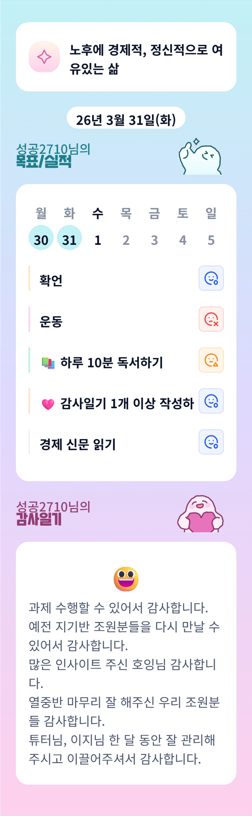 성공님.. 열중반 한달!! 수고하셨습니다.. 4월도 화이팅입니다^^