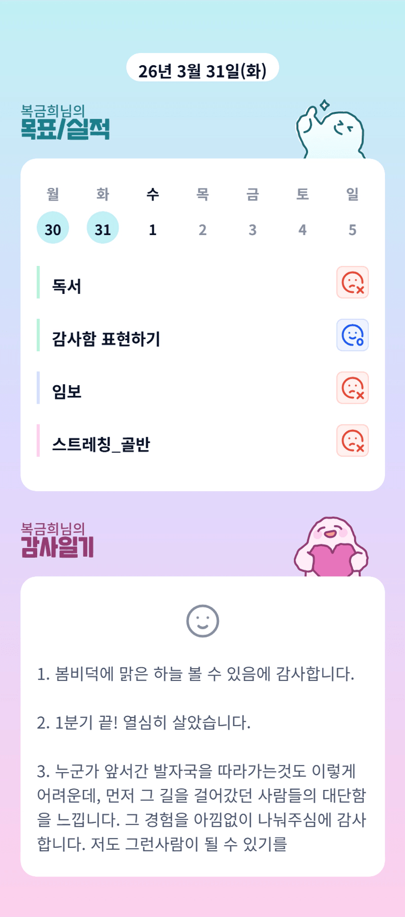 1분기 후딱 지나갔네요.. 만족스러운 1분기 보내셨나봅니다!! 고생많으셨습니다👍🏻
