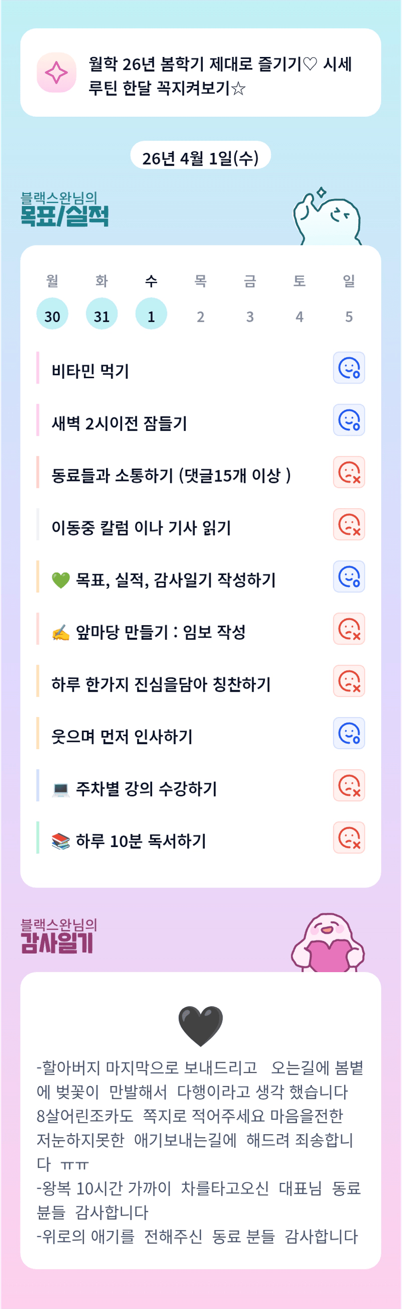 스완님 마음고생 많으셨네요~ ㅜㅜ 건강하게 마음 잘 추스리시고 조금조금씩 환경에서 다음 스텝도 준비해서 할아버지께 좋은 모습 보여드리셨으면 좋겠습니다!