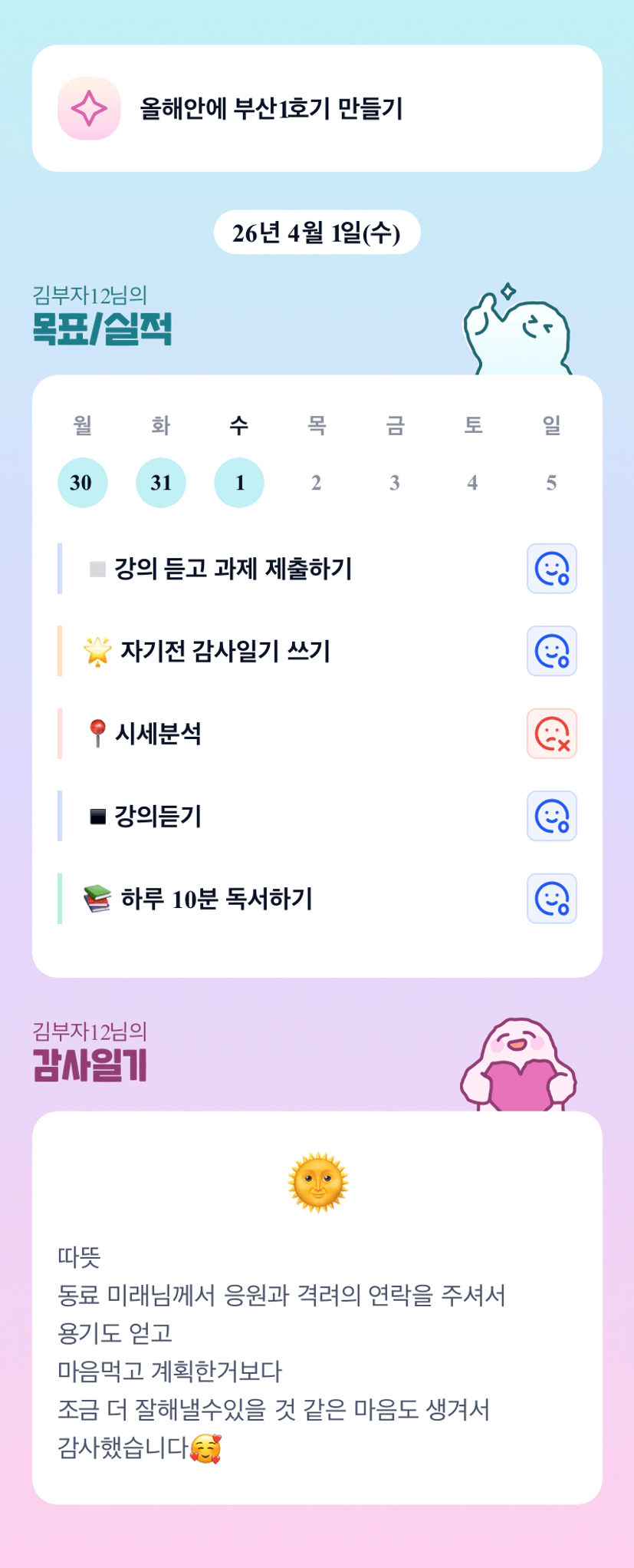 부자님 잘 할 수 았어요 우리 한달간 찐하게 해봅시다아♡