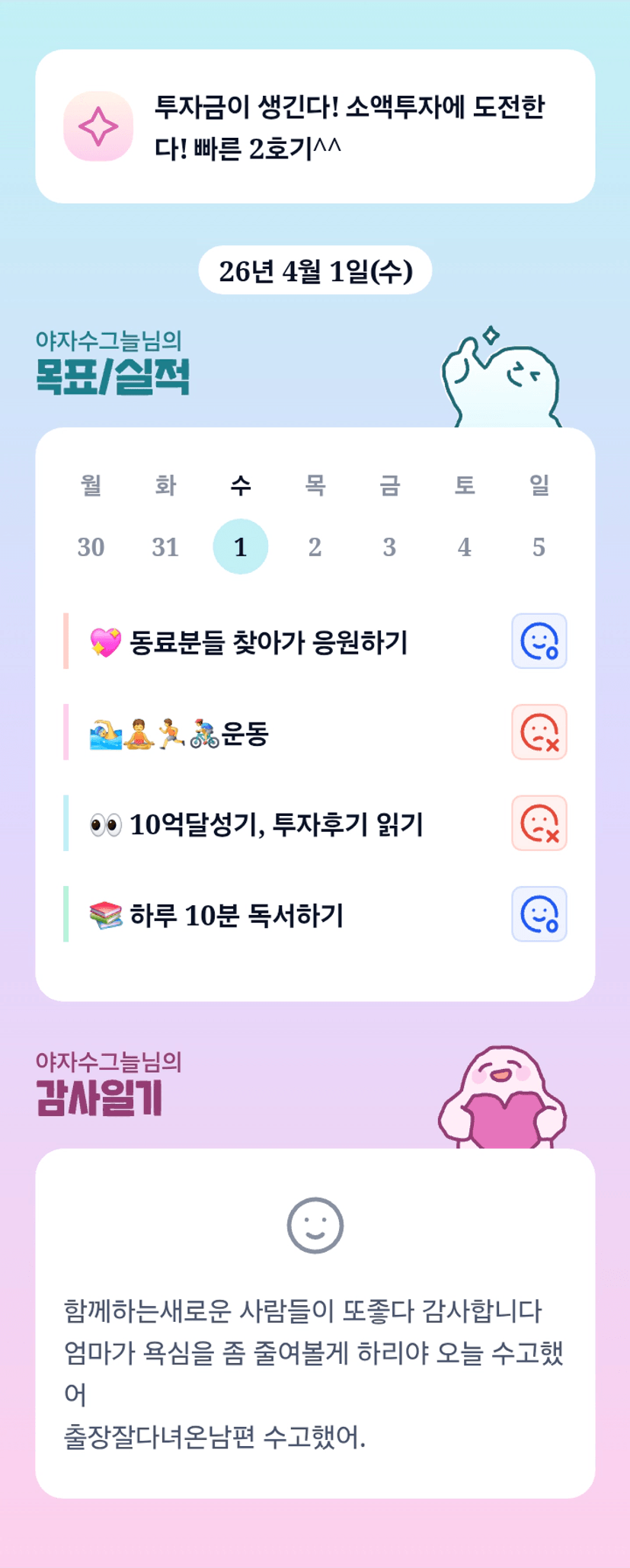 "욕심을 좀 줄여볼게"라는 말이 히잉.. 🥲 저는 그늘님 욕심 지켜드릴래요♡