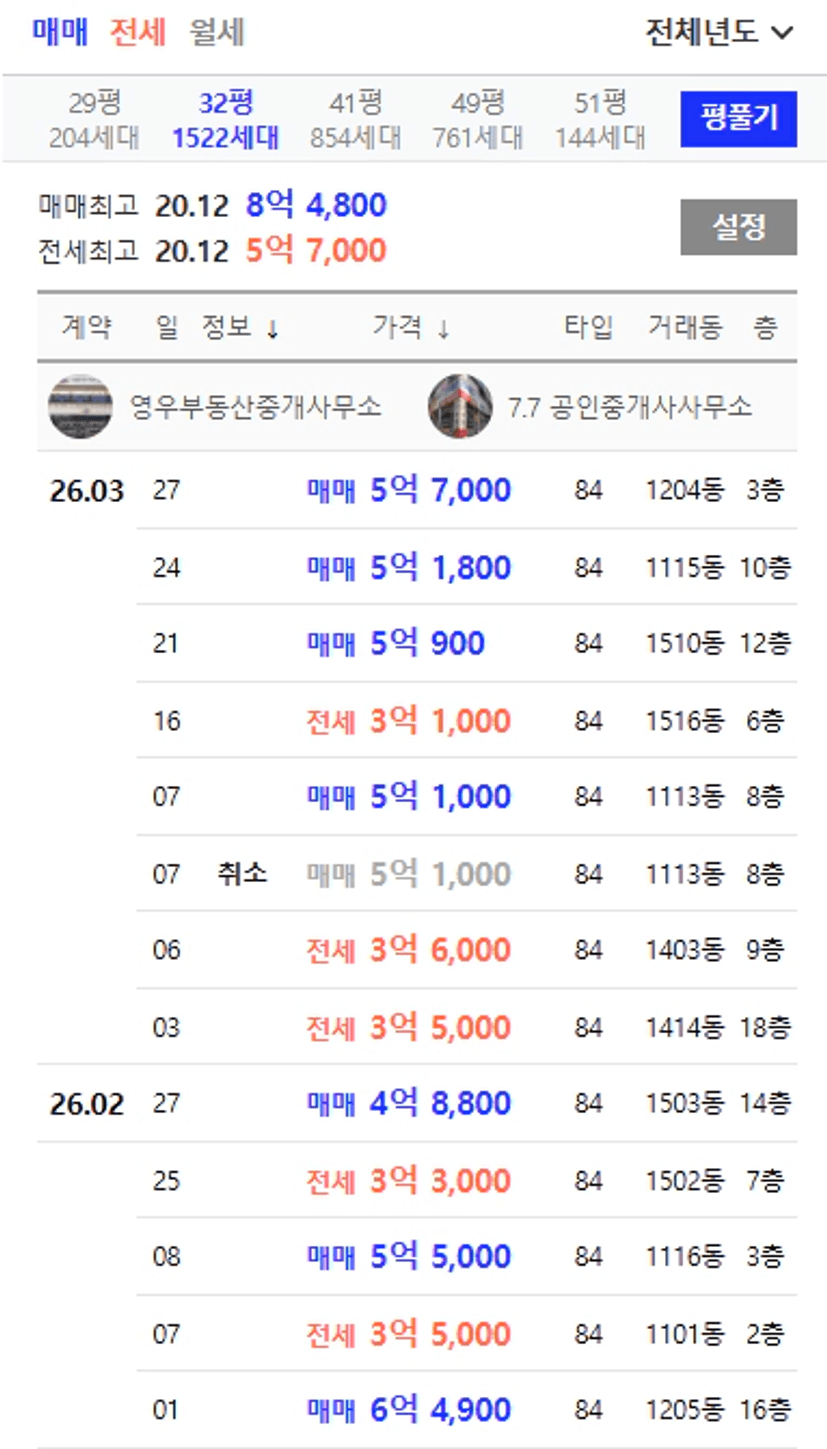 5.7억 3층 거래. 3층이 5.7억인거 보니 4단지인가?