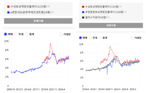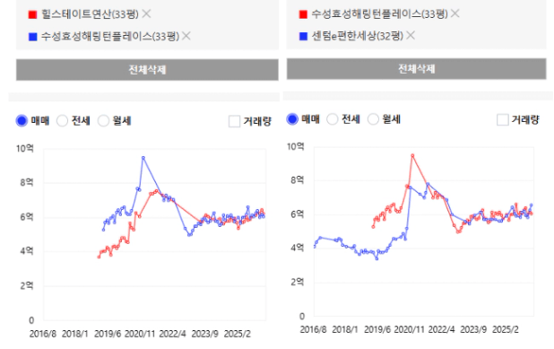 수성구는 해운대구보다 수요의 밀도가 크다.