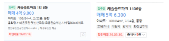 골클 동향이랑 해링턴 남향이랑 같이 가는데