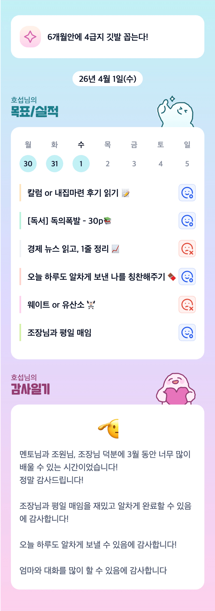 조장님, 호섭님과 같이 매임 가고 싶네요~ ㅎㅎ 6월까지 화이팅입니다!