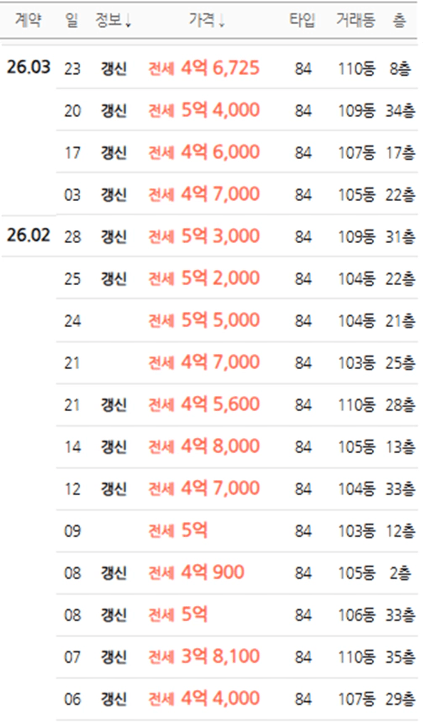 둘째, 지역 전반적으로 전세 물건이 많지 않습니다