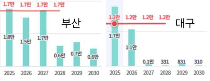 첫째, 부산, 대구 등 주요 지방 광역시의 향후 공급이 줄어들고 있습니다
