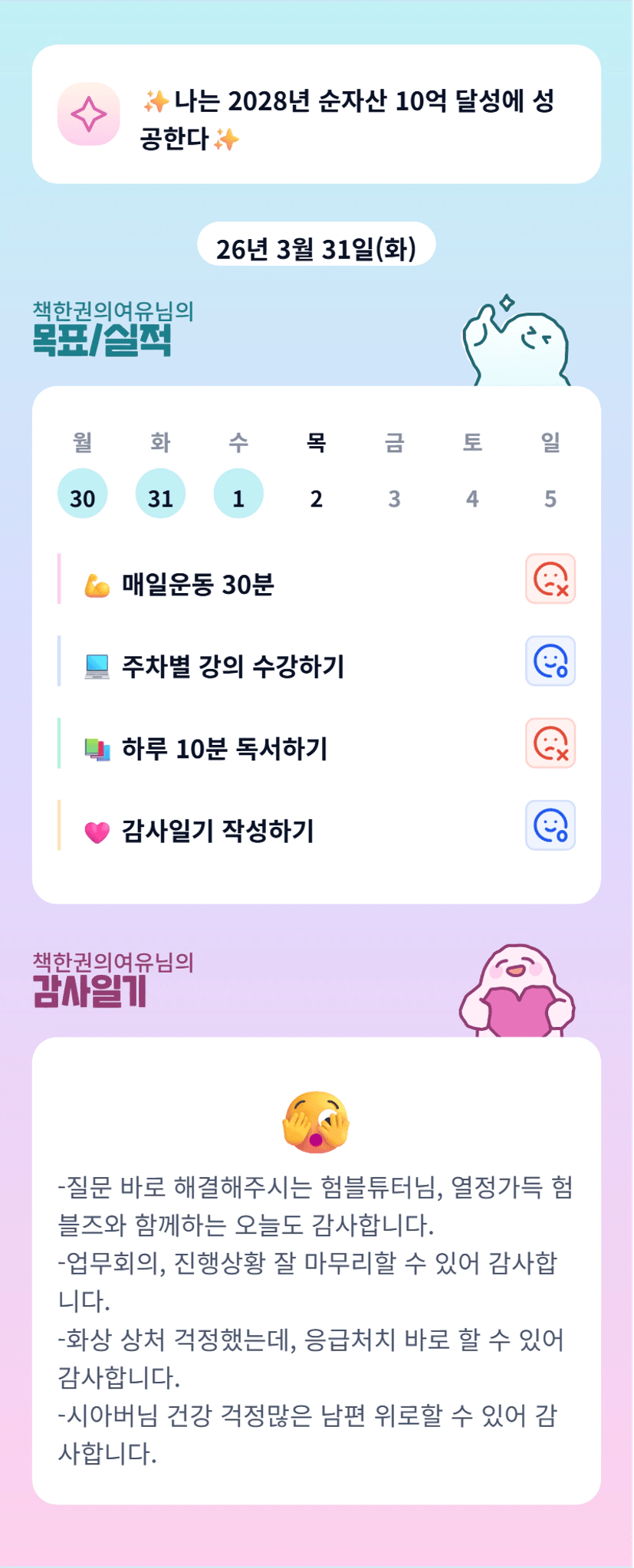 여유님~ 요즘 바쁜 업무 ㅠㅠ 그럼에도 해야할 것들 해내시는 믓진 투자자!! >_< 어제도 너무 고생 많으셨어요 😀