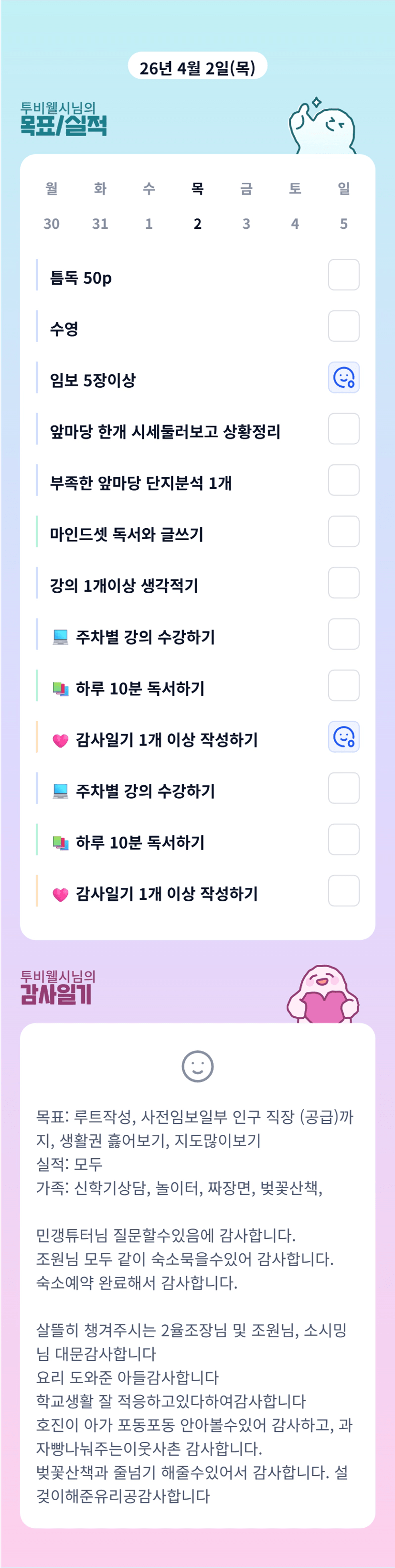 벌써 임보 5장,,! 최곱니다 ㅎㅎ 오늘도 화이팅 입니다 웰시님 :)