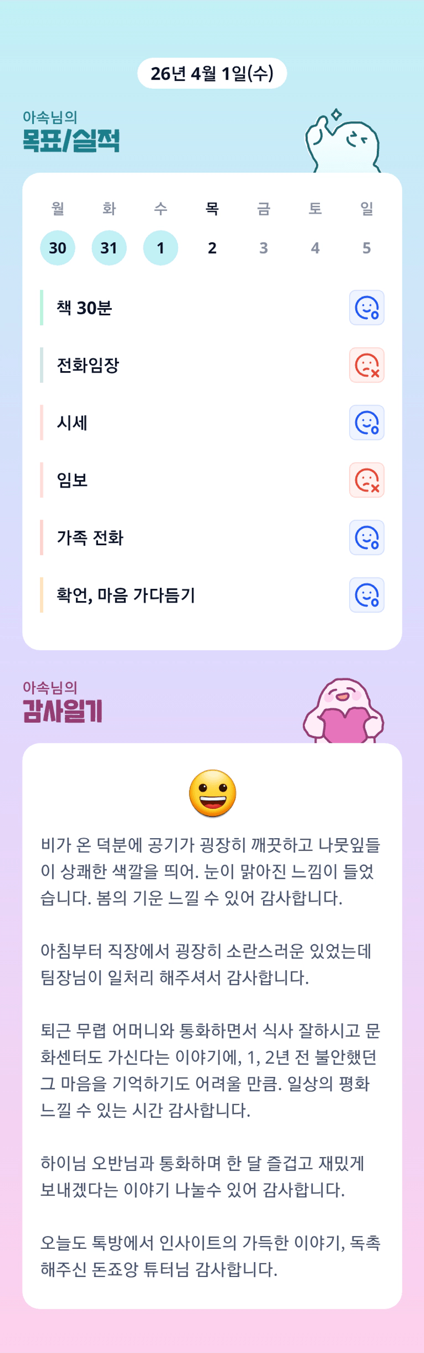 조장님, 감일이 수필 같아요~~^^~~ 넘 따숩~~^^