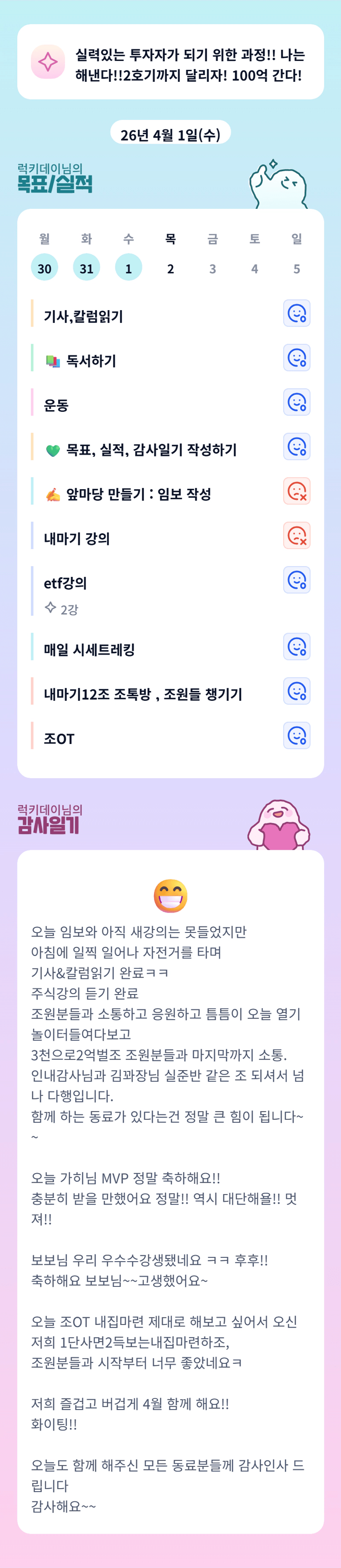 내마기,주식강의.. 열정이 대단하시네요 !! 4월 한달 화이팅