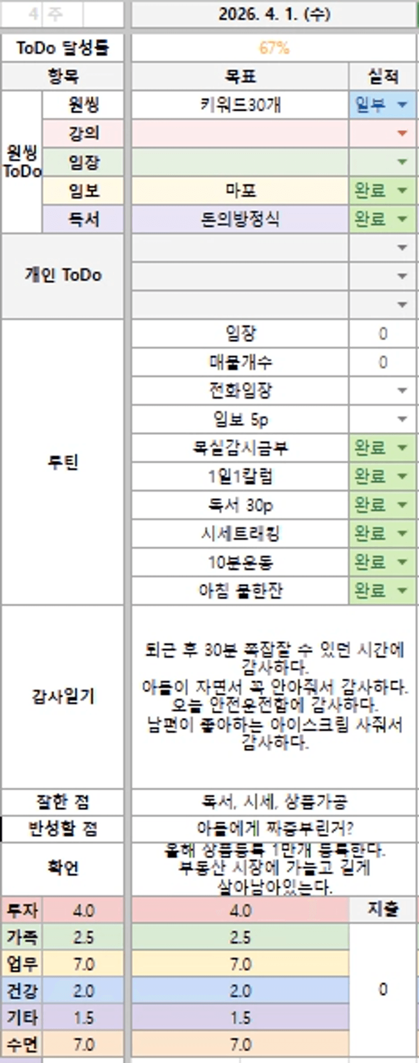 나는 가족들에게 도움을 줄 수 있는 실력을 갖춘다.