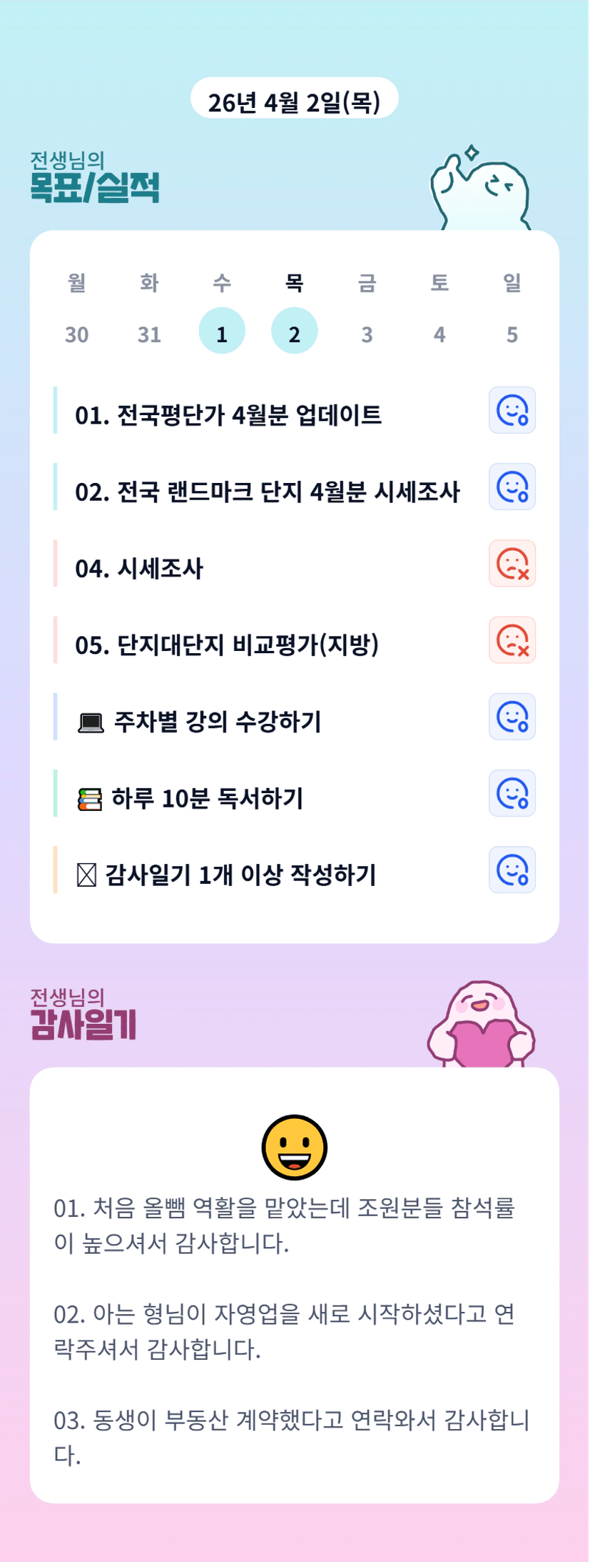 저 1월에 첫 실전이라 올뺌쉬울꺼같아 지원했는데, 기초반과 달리 조원분들이 끝까지 하셔서 의외로 극한이였다는...그치만 날마다 컴퓨터를 켜게되는 마법이 생깁니당 응원합니다 전생님~