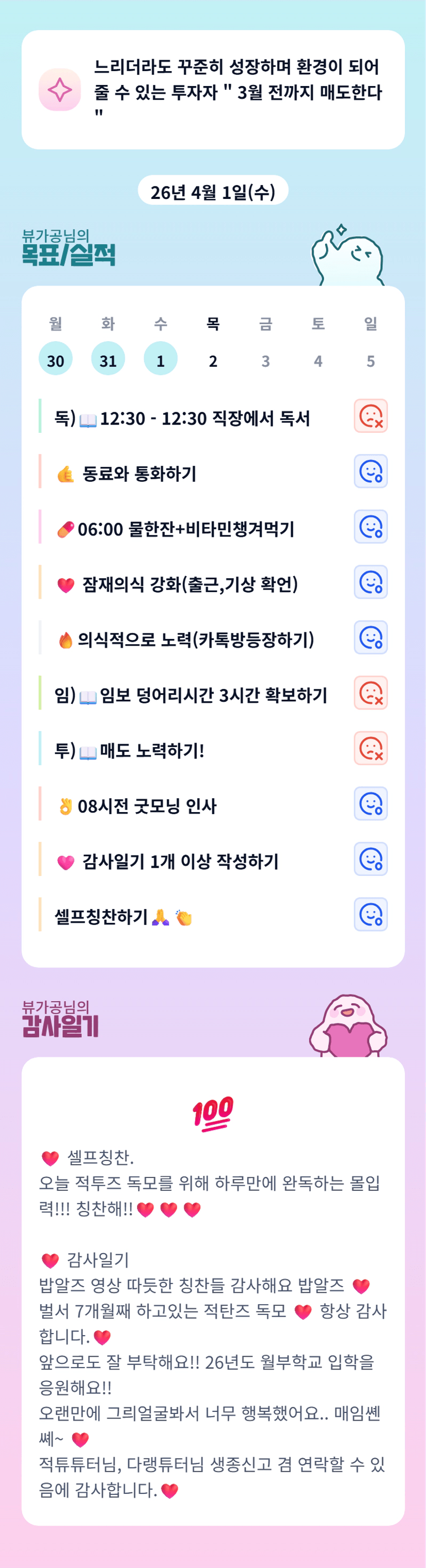 조장님~~ 하루 완독이라니! 역시 몰입대장🥰 늘 보고픈 매갓생 대장~~ 건강이랑 유리공 잘 챙기세요🙏