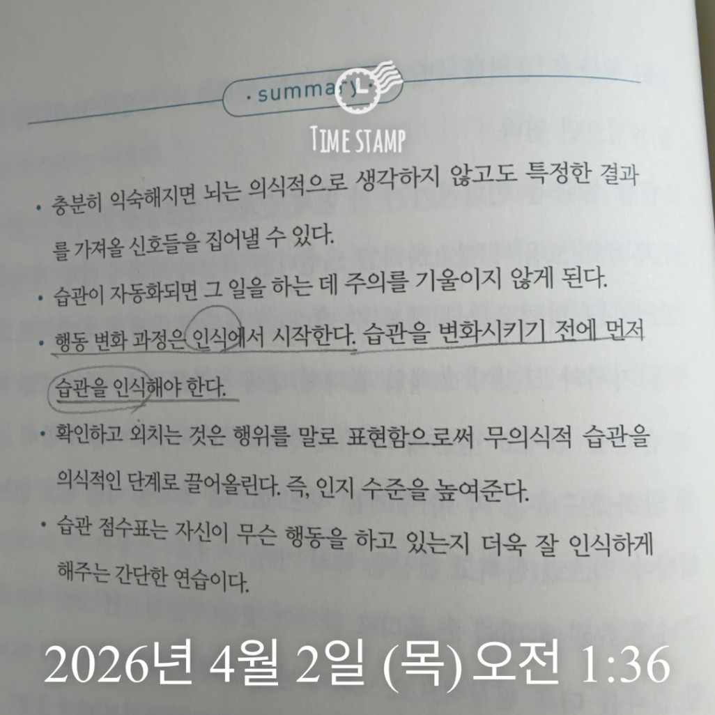 습관을 변화시키기 전에 먼저 습관을 인식해야 한다. 좋은 말이네요 ㅎㅎ