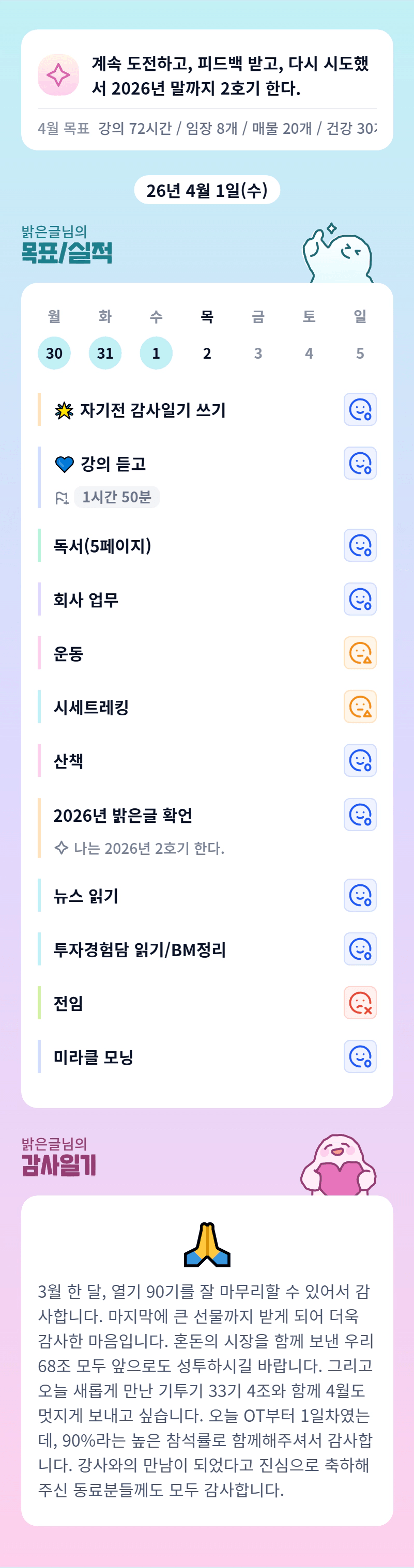 오호 글조장님 이번에도 상타셨... 강사와의 임장 축하드립니다😄🎉🎉 3월 한달도 고생 많으셨습니다💕