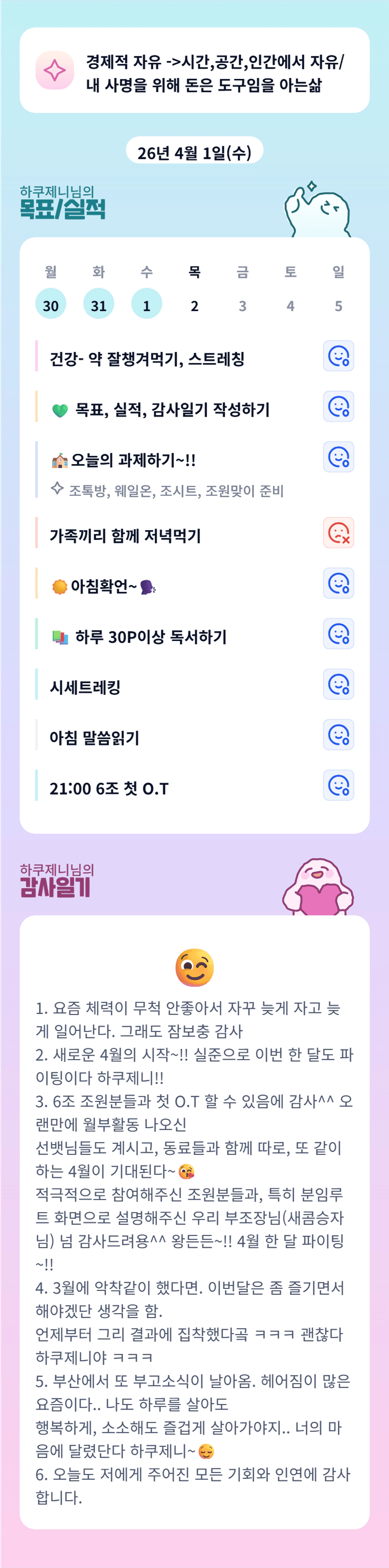 [내마기🦄60번 꿈꾸던 집🏠, chill(7)~하게 내집마련 하조✨️💰_하쿠제니] _ 1주차 조모임 후기~🍀