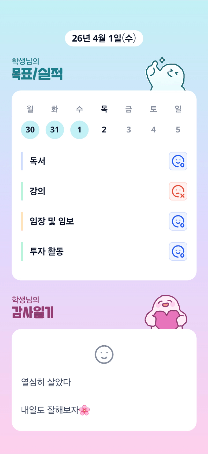 열심이신 학생님! 오늘도 수고많으셨어요!