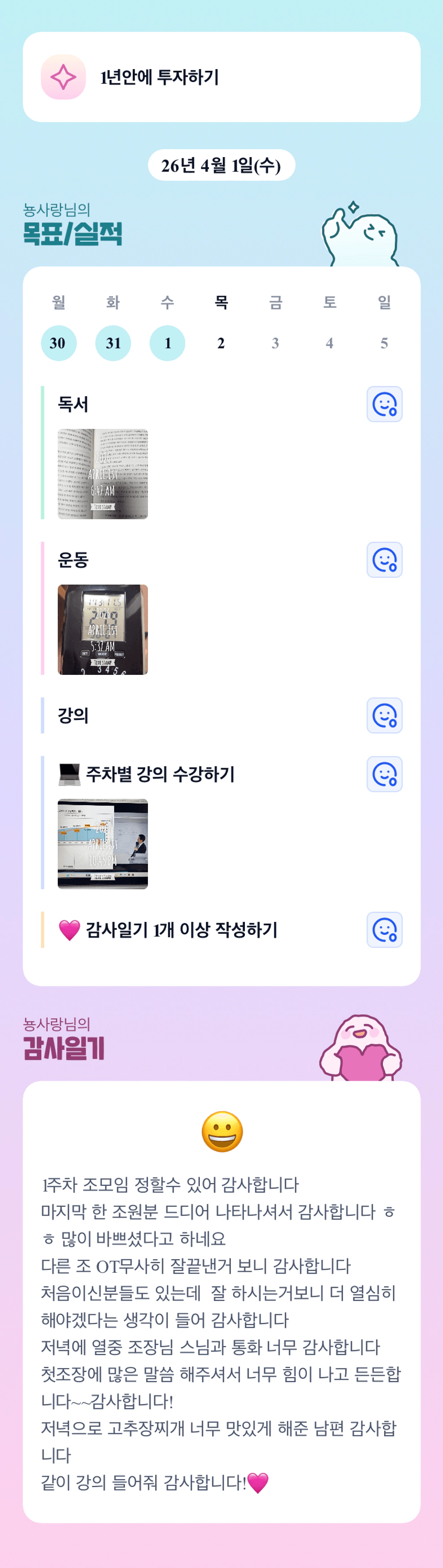사랑 조장님~ 잘 하실 것을 믿습니다. ^^ 화이팅!!