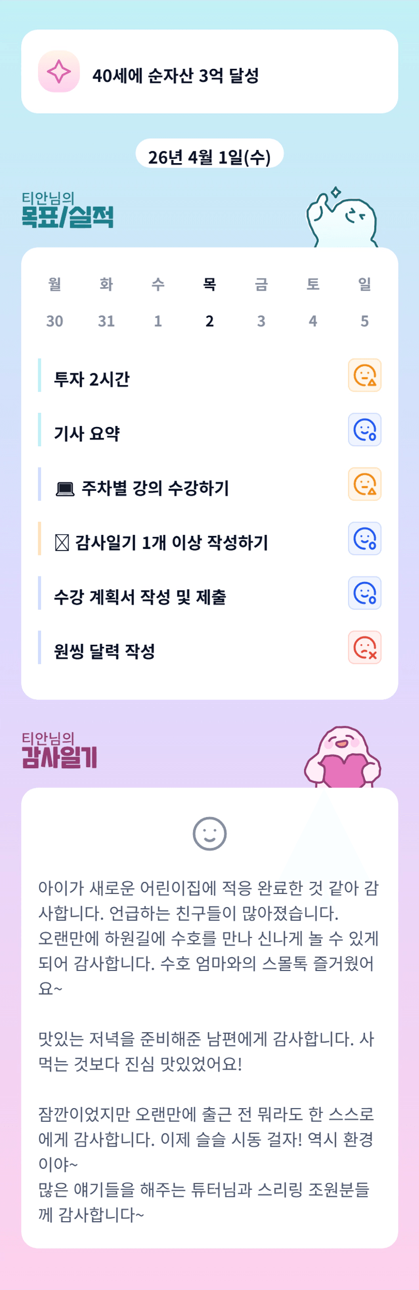티안님 어제 하루도 고생 많으셨어요 오늘 전화드릴게요^^