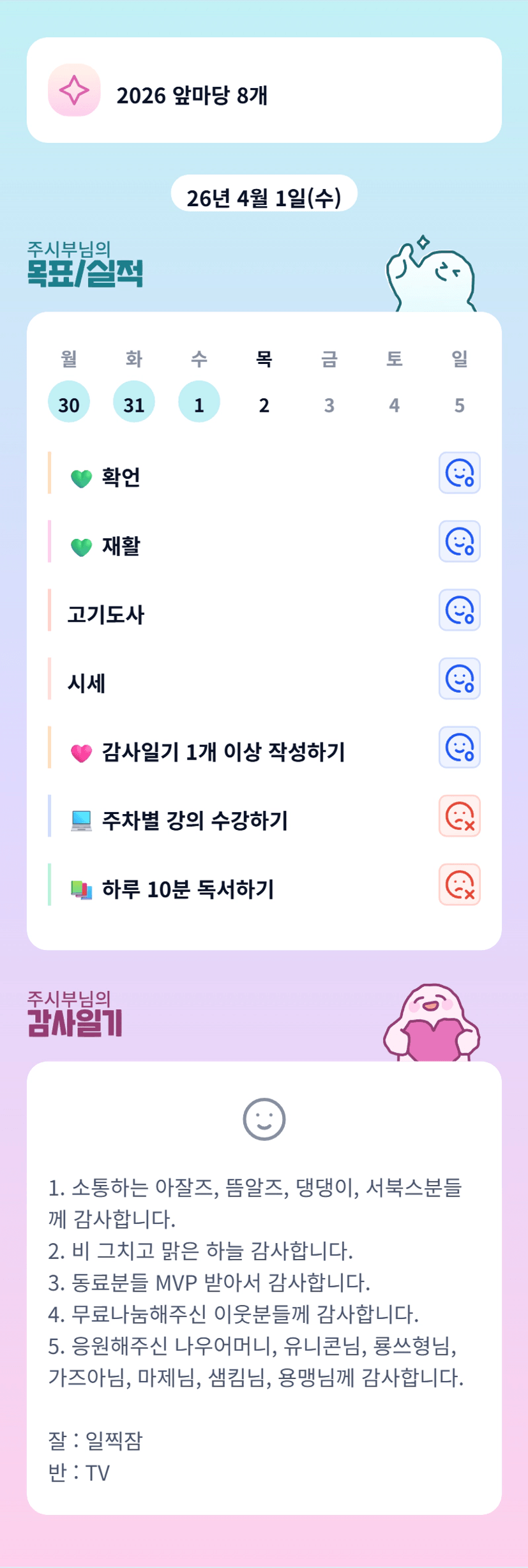 전 그래도 TV가 없는 걸 다행이라 여기며...ㅠㅠ 오늘도 화이팅!!