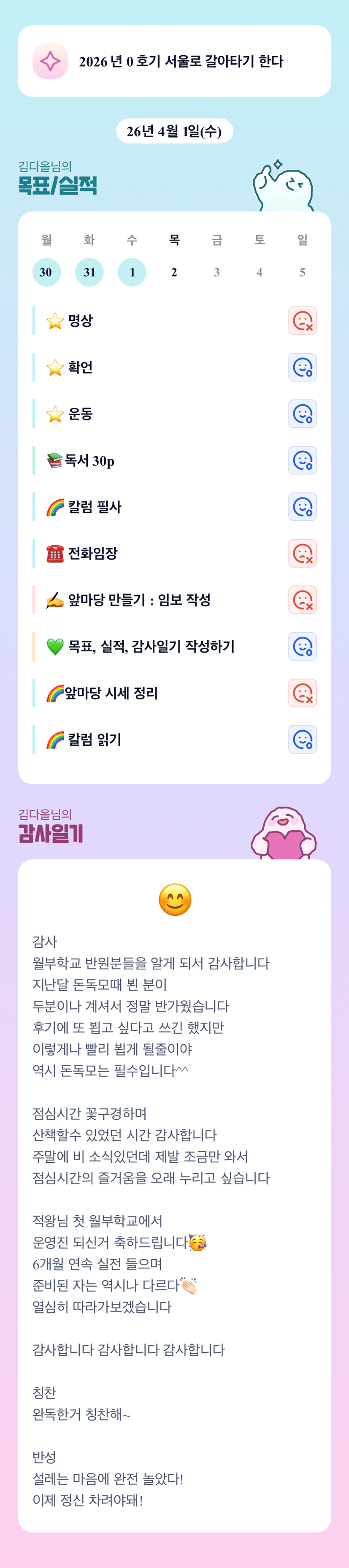 다올님 소소한 산책까지!! 설레는 마음~ 열정적으로 월학 화이팅입니당!! 💖