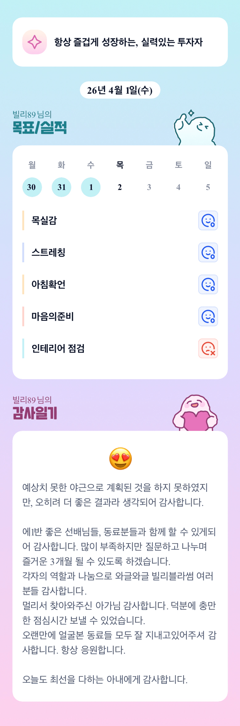 와글와글 빌리블라썸🌸 튜터님 오늘도 화이팅이에요🫶