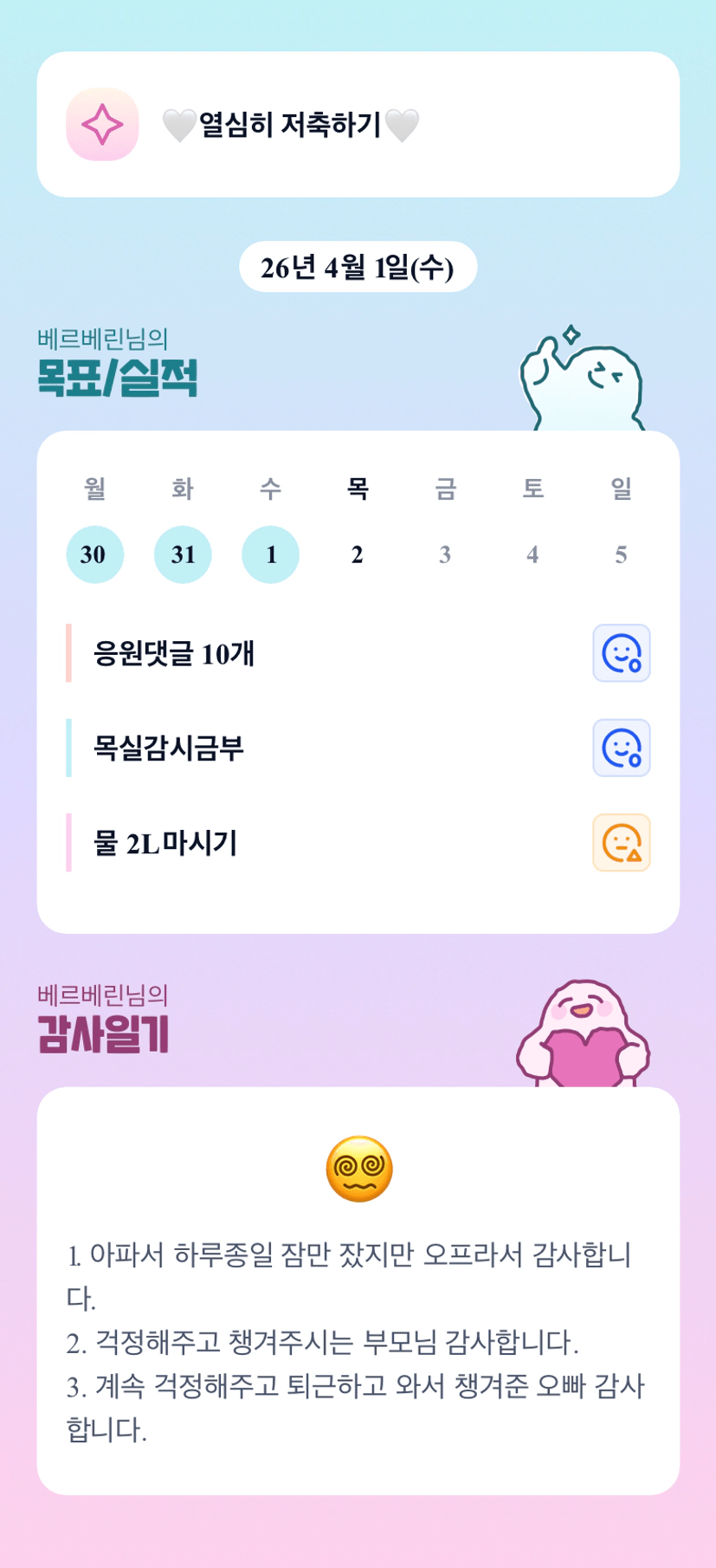 헉 어디 아파요 베르베린님ㅠ 아프지말아요