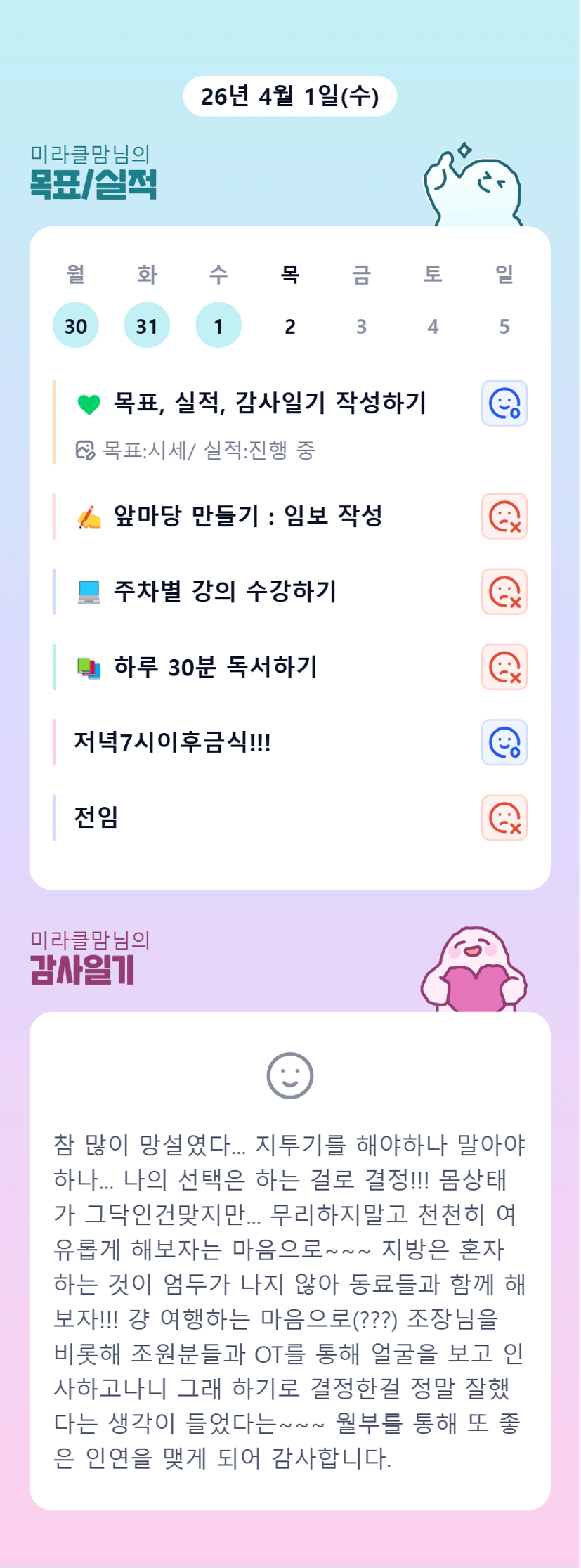 맘님 지투기 시작하시는군요! 진짜 쉬지 않는 열정 어디서 나오는건가...ㅎㅎ그녀의 끝은 일본인건가~~ 건강 챙기면서 파이팅하세요!