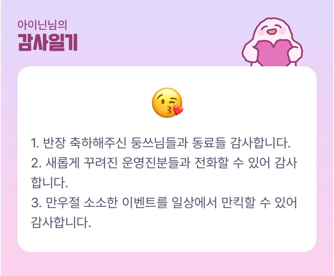 닌장님 반은 너무 좋겠네요오!! 오늘 오티도 홧팅입니다!!