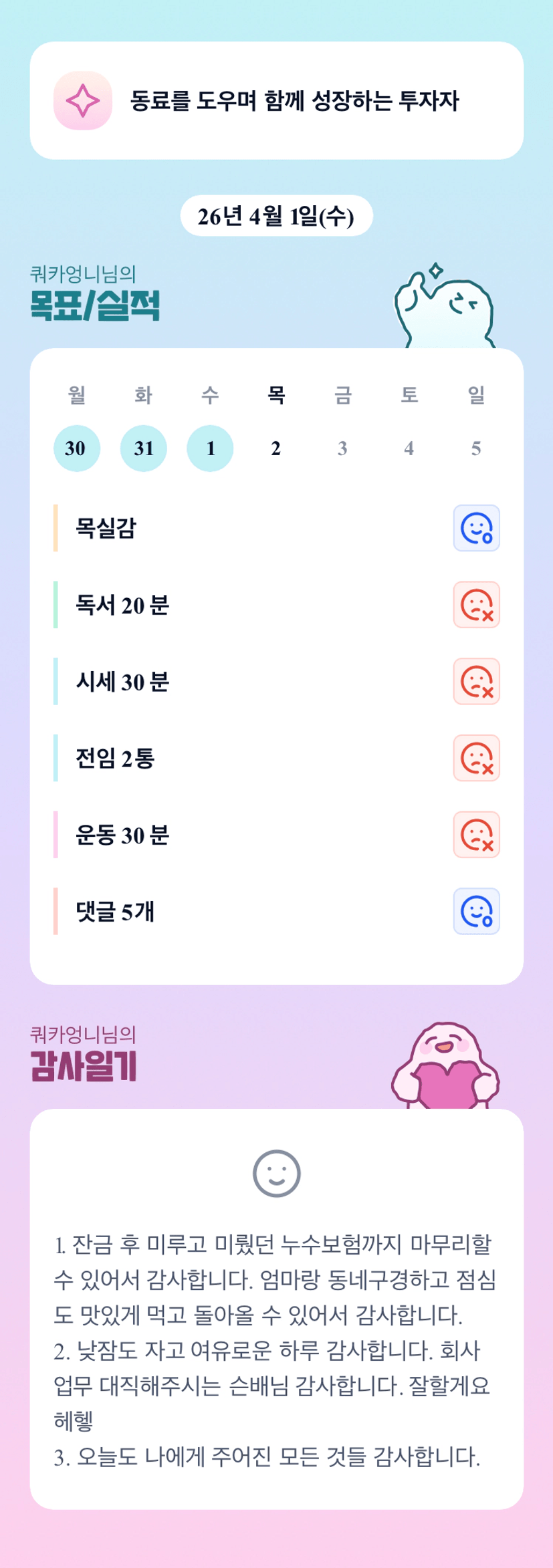 이제 완죤 마물하셨군요!! 쿼카띠😊 엄니랑 너무 좋네요😁 오늘도 빠팅입니다🔥
