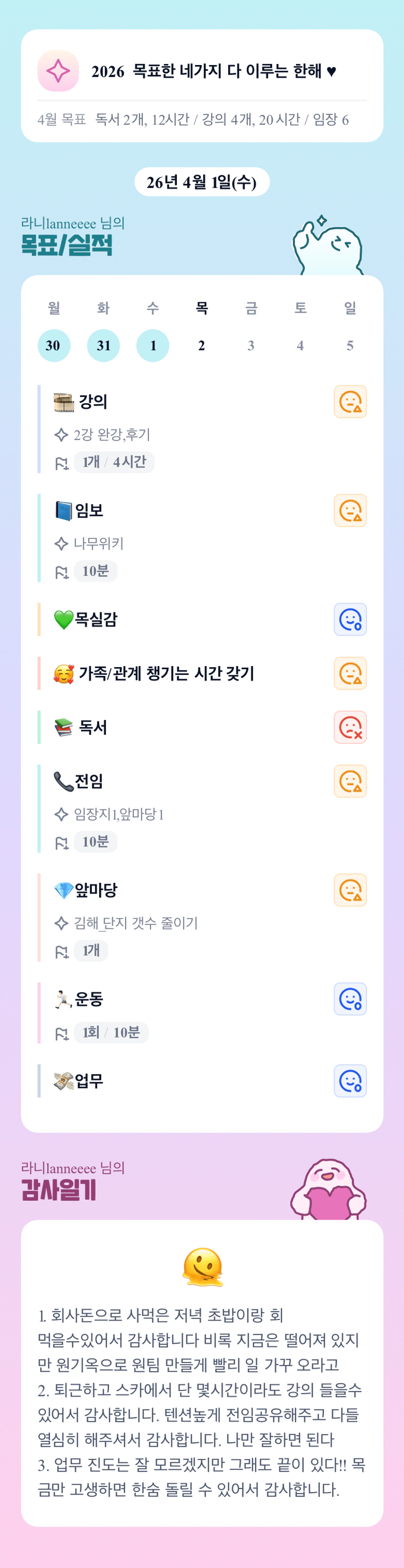 4. 수강계획서 쓰면서 이번달 목표를 다시 생각하게됨에 감사합니다.