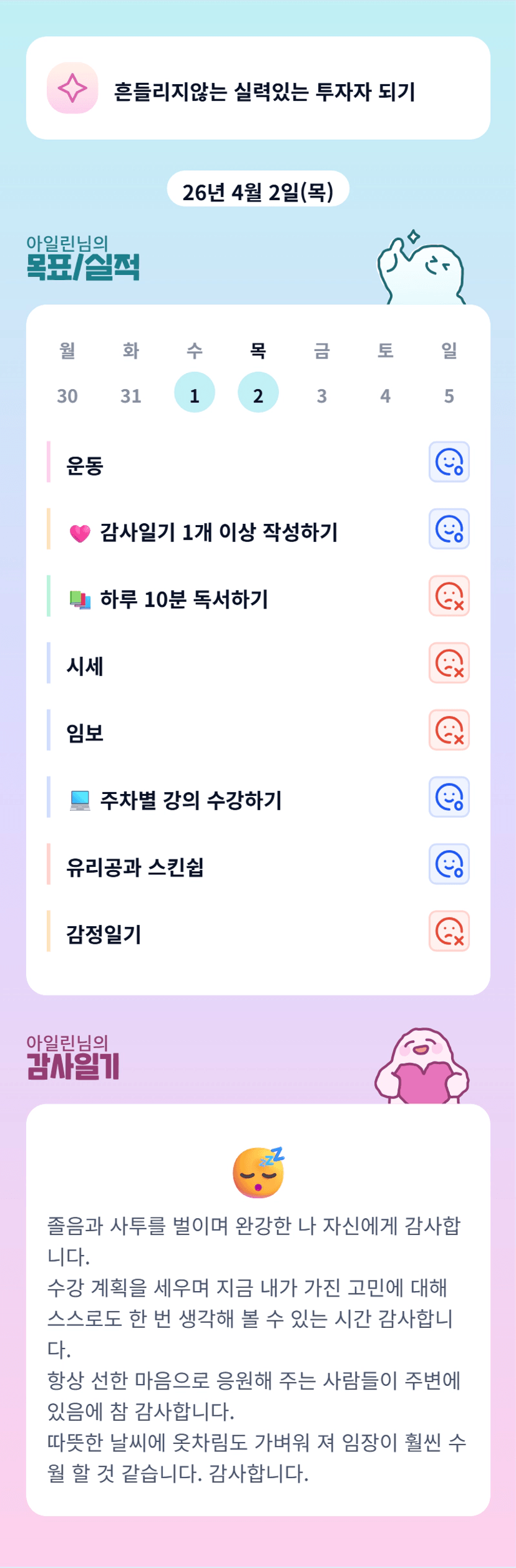 아일린님 이번 지투실 함께할수 있어서 감사합니다 🌸