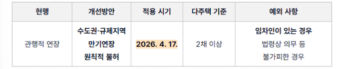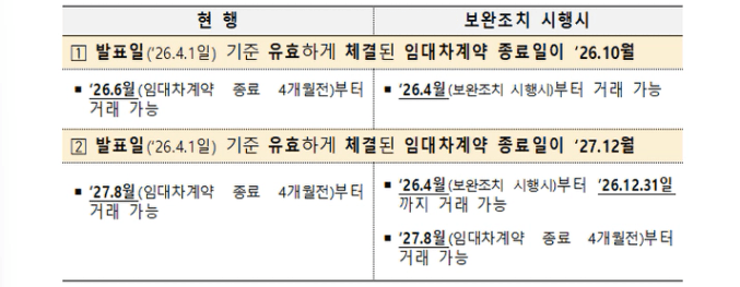 이번에 무주택자가 다주택자가 소유한 주택을 매수하는 경우에 한해 보완조치를 적용하여 2026.12.31까지 거래를 할 수 있도록 시행한다고 합니다.