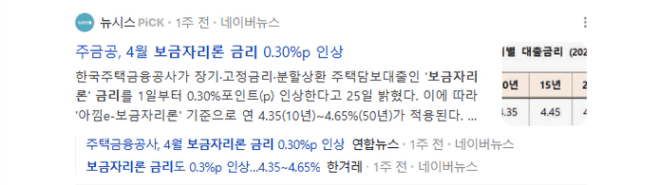 대표적인 서민형 정책대출 상품인 보금자리론도 4월부터 0.3%p나 금리를 인상한다고 합니다. 시중은행도 비슷한 흐름으로 갈 수 있다는 걸 생각해봐야 합니다.