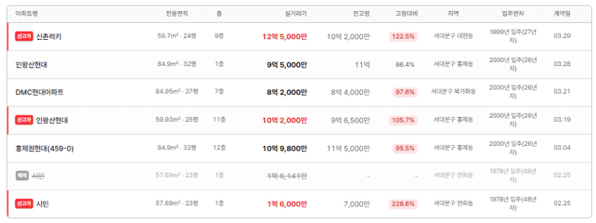이런 흐름 속에서 신촌럭키는 직전 전고점을 넘어 12.5억으로 최고가를 경신했다. 이미 많이 오른 대장이나 신축은 잠시 숨을 고르고, 상대적으로 덜 오른 단지들이 뒤따라 올라오는 흐름이 이어지고 있는듯 하다.