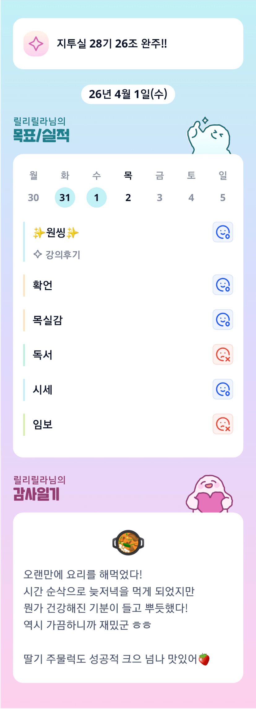 릴라님 만나서 반가웠어요 ! 4월 힘내세요 !