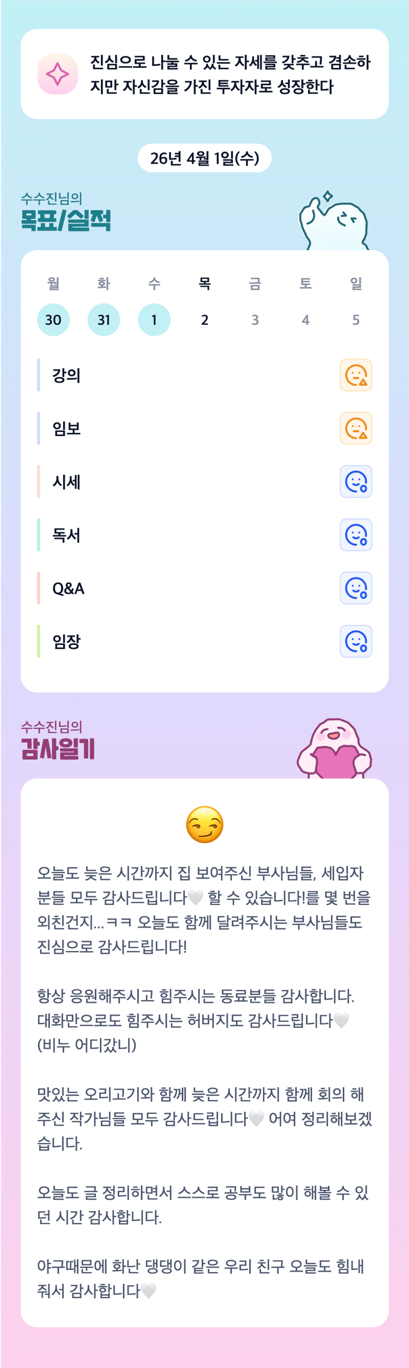 할 수 있다!!!!! 모든 다 해낼 수 있는 수진쓰 고생 많았어요~~~><😌😌 오리고기 맛있었겠다..🥹😌😌