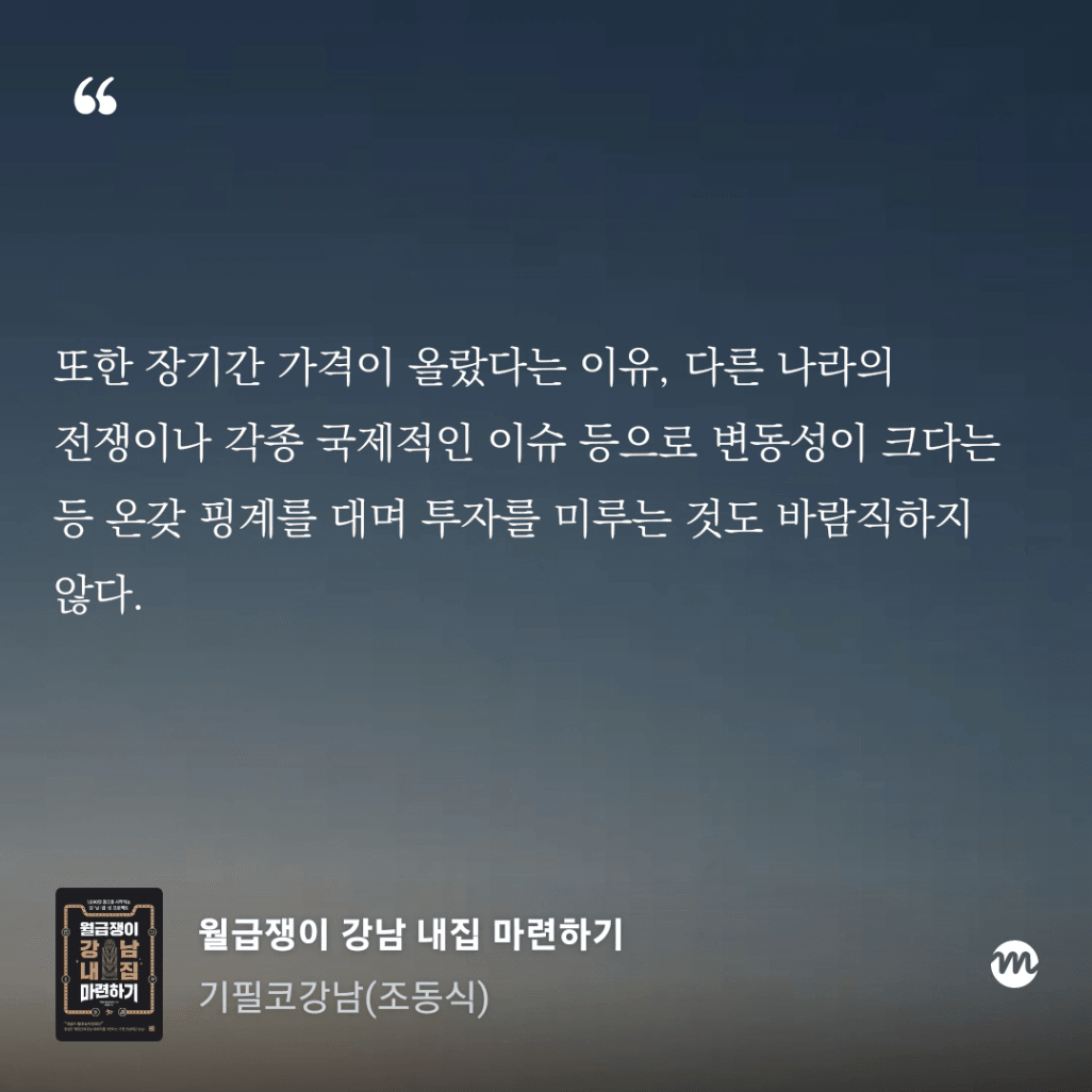 강남이 기회를 주었을 때는 경제적으로 위험한 때가 있었다. 남들이 두려워 할 때 사야한다!