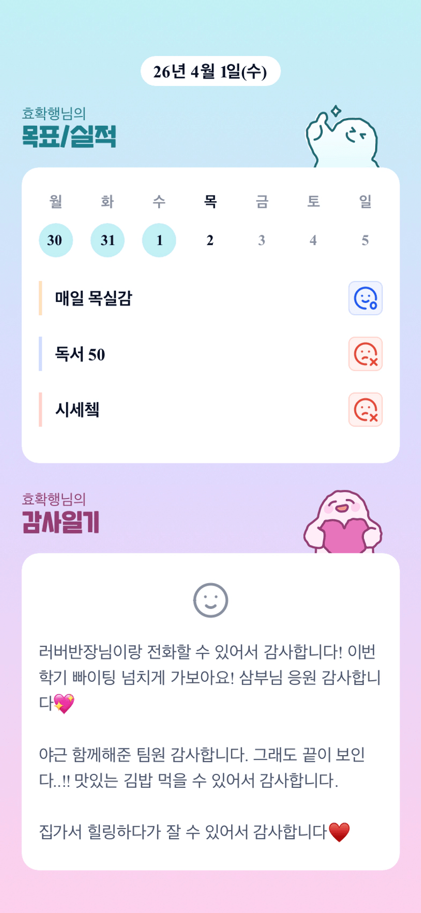 효확행님 어제 야근이셨군요! 넘 수고많으셨어요!