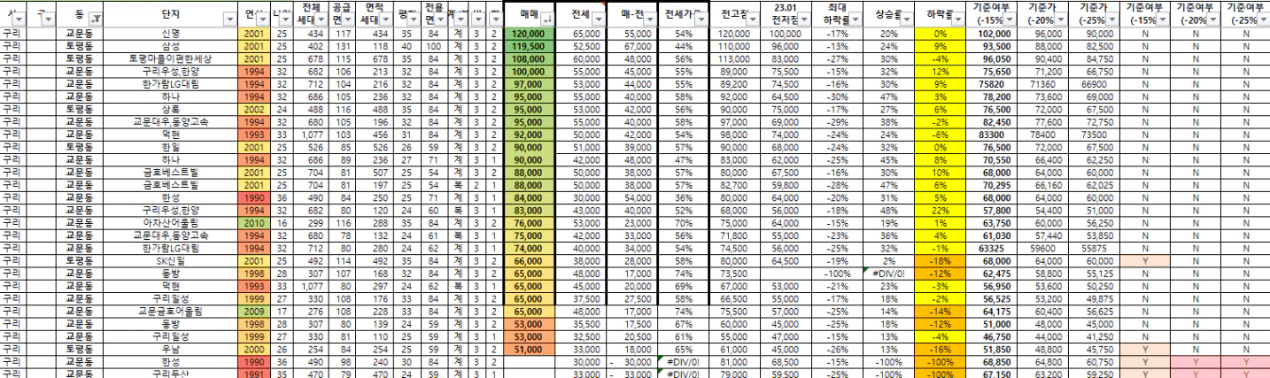 토평이편한은 아직 전고회복을 못햇고 구리우성한양은 전고를 훌쩍넘었다
