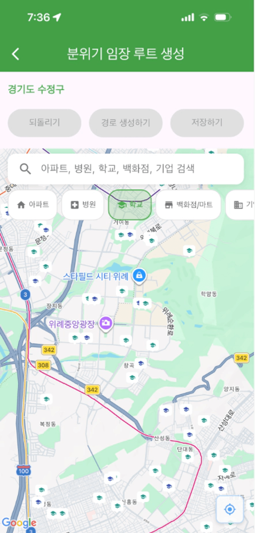 오늘까지 분위기 임장 루트를 만들어보자고 하셔서, 한 번 만들어봤습니다.