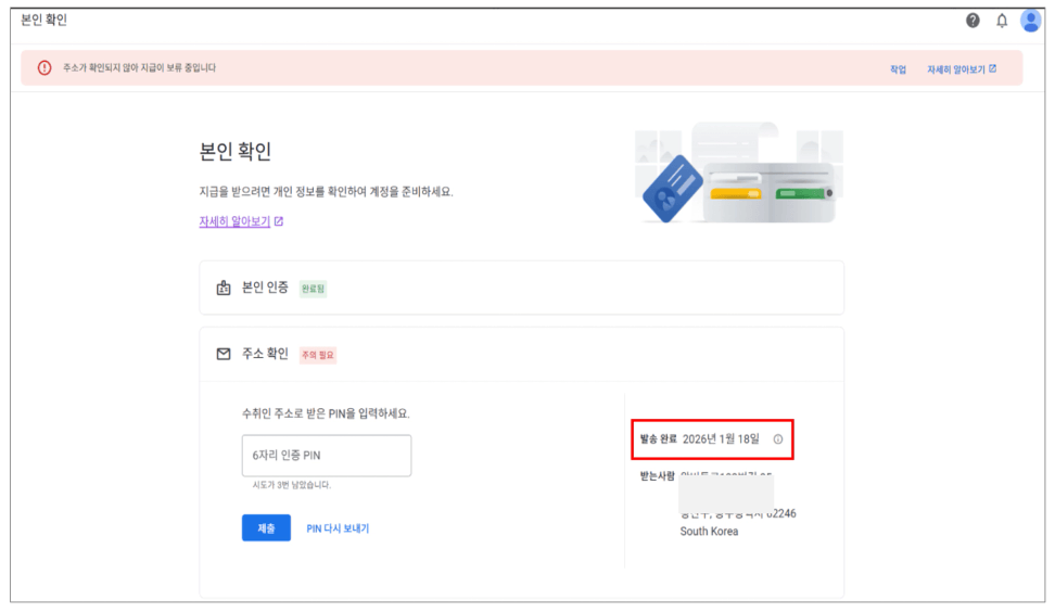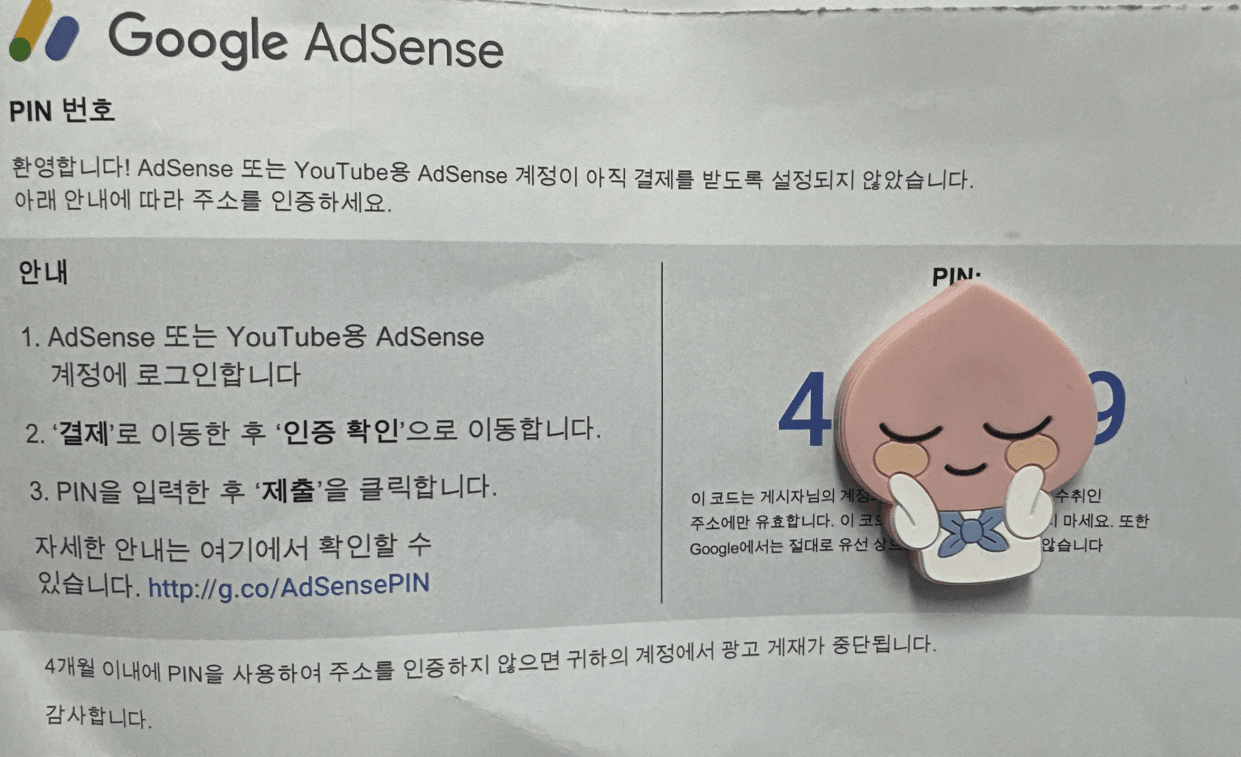 ✅ 애드센스에서는 최대 4번까지 PIN 재발송 요청이 가능합니다.