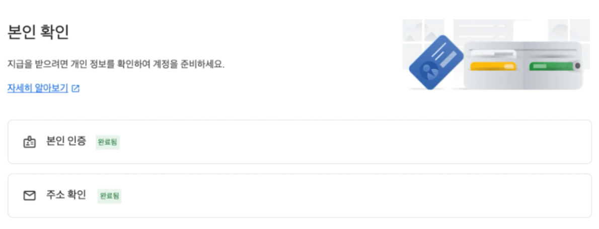 이렇게 본인 인증 / 주소 확인 모두 완료됨