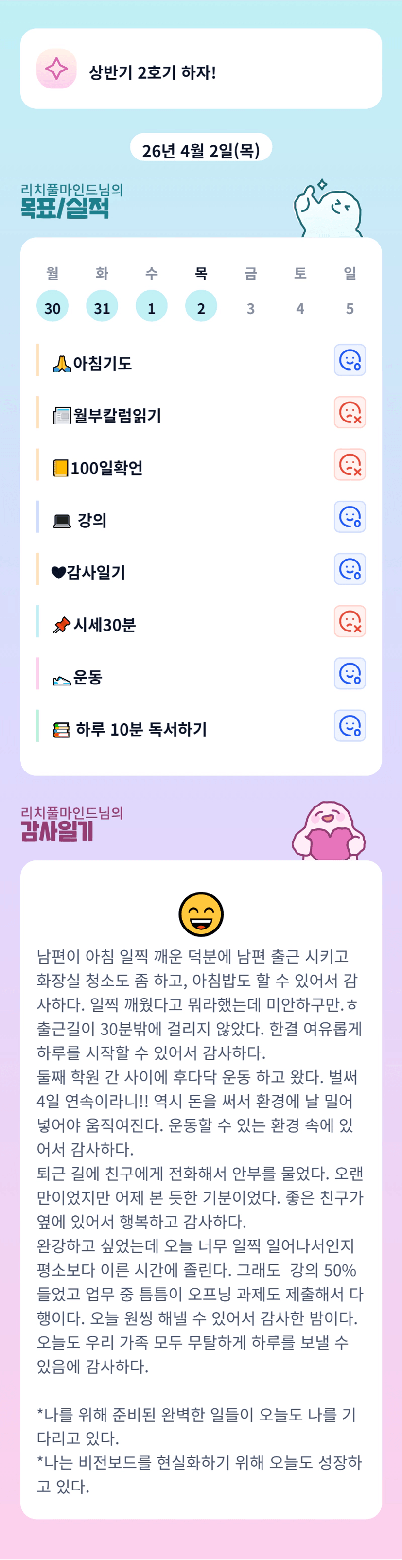 리치님 운동환경 잘 하셨네요! 저도 함께 잘 해볼께용!! 아자아자!!