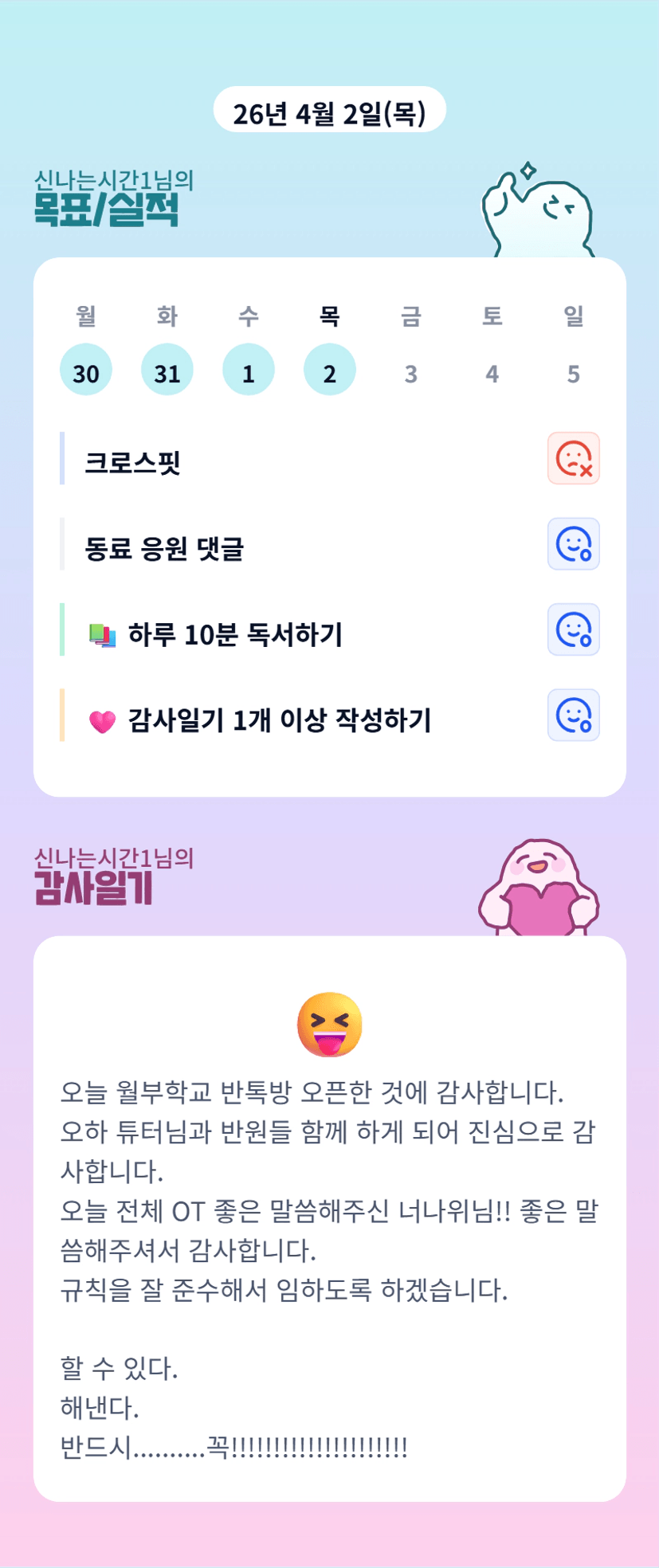시간님 화이화이!♡ 건강 챙기면서 잘하구와요!