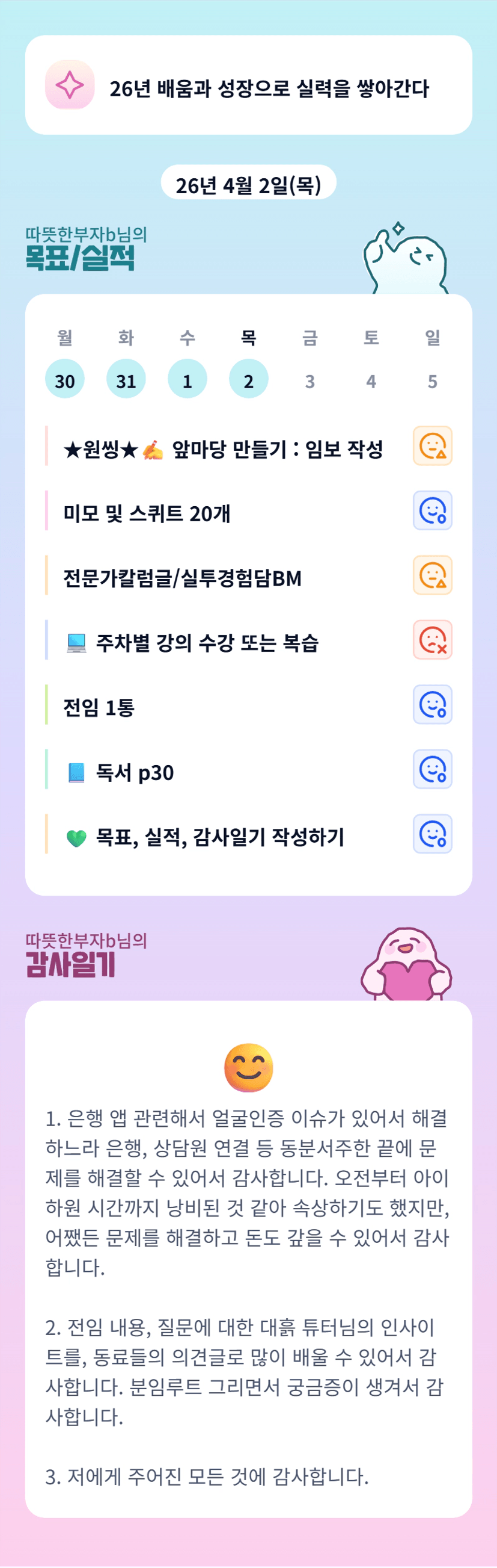 바쁘신 시간에 연락을 드렸었군요ㅜㅜㅋㅋ 오늘도 홧팅입니다 따부님!